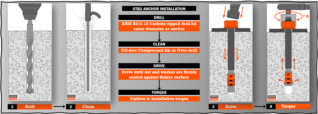 Post-installed mechanical wedge anchors, such as the STB2, are a widely accepted solution for structural connections to concrete and grout-filled masonry elements. By understanding the system components, installation procedures, and structural applications, you can confidently select, design, and specify the appropriate anchor type to meet your project’s demands. Stay tuned for the next Anchor Anatomy 101 blog post, featuring the Heli-Tie™ helical wall tie. For questions about anchoring products or project-specific applications, please contact your local Simpson Strong-Tie field engineer.