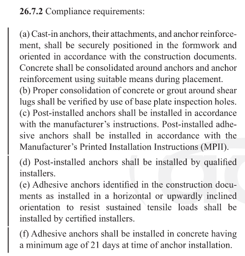 There are two acceptance criteria that apply to post-installed “Code Anchors”: