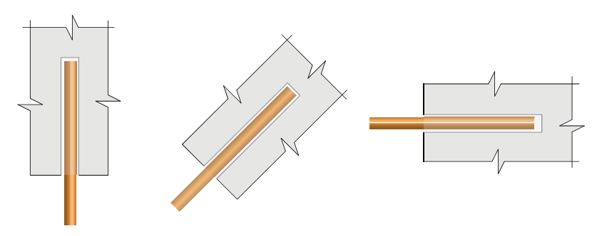 Installations into horizontal, upwardly inclined or overhead drilled holes (Figure 2) require more care on the part of adhesive anchor installers. Although the installation principle to avoid entrapping air is similar for these orientations, a key difference is that gravity does not help to keep the adhesive towards the “bottom” (deepest point) of the drilled hole. At worst, it can work against the installer when ambient temperatures may cause the adhesive to run out of the hole during injection. These adhesive anchor installations can be more difficult for an untrained installer and can slow the rate of work. This is one of the reasons that ACI 318-19 Section 26.13.3.2(e) requires continuous special inspection of adhesive anchor installations in these three orientations when the application is also intended to resist sustained loads.