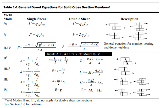 TR12 has yield limit equations that allow a designer to account for a gap between the main member and side member of a connection. With a gap of zero (g=0), the TR12 equations provide the same results as the NDS yield limit equations.